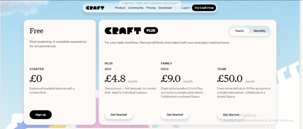 If you need more — unlimited blocks, more storage, advanced features — you can upgrade to Craft Plus. As per [2025 pricing], Craft Plus starts around US $4.79/month (regionally priced).