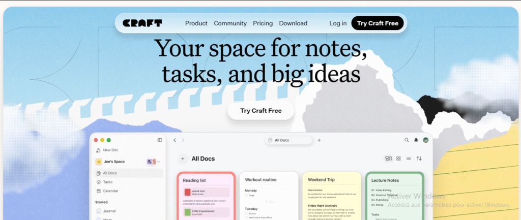 Simply put, Craft.do — often shortened to “Craft” — is a modern productivity platform for note-taking, document creation, task management, and project organization.