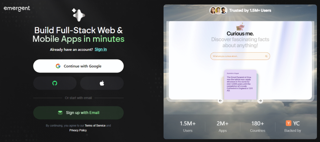 Note: While I’ve not built a full enterprise system with it, I experimented with Emergent.sh and here’s how it felt.