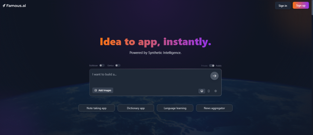 Famous.ai is a cloud-based, AI-powered web and app builder. At its core, it aims to let non-developers (or low-code devs) create functional web apps, landing pages, internal tools, dashboards, or small SaaS products — by describing what you want in plain English.