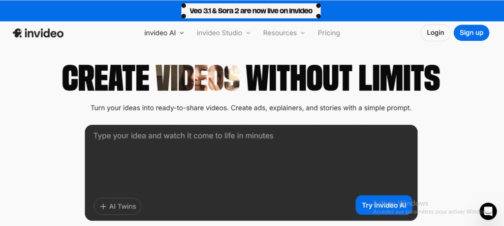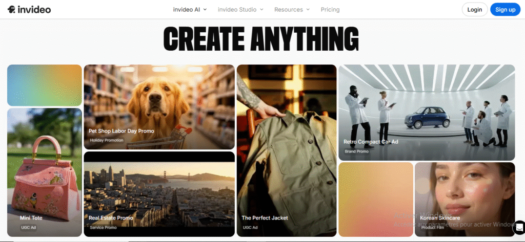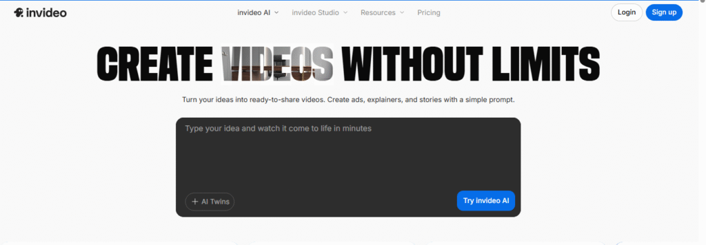 - Sign up: Go to InVideo.io, create an account (free or paid plan) and login.