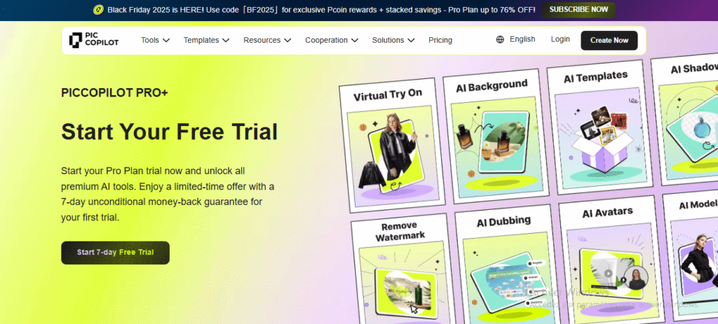 - PicCopilot touts a “Try now free” on many of its features (background removal, AI shadows, model generation) via its website.