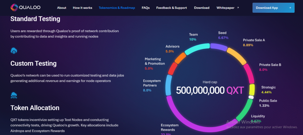 QXT is the native token of the Qualoo ecosystem. Users who contribute mapping or run nodes may earn QXT tokens, which can be used within the ecosystem (and potentially traded) according to platform rules.