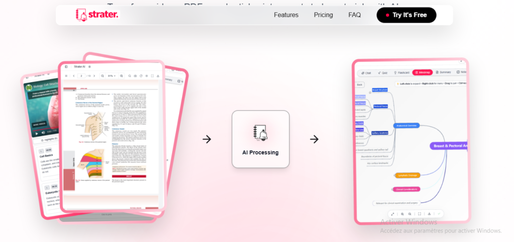 At its core, Strater AI is an AI-powered learning assistant. Its goal is to convert “passive” learning content — such as YouTube videos, PDFs, articles, or web pages — into structured, active learning materials: summaries, flashcards, quizzes, mind-maps, and more.